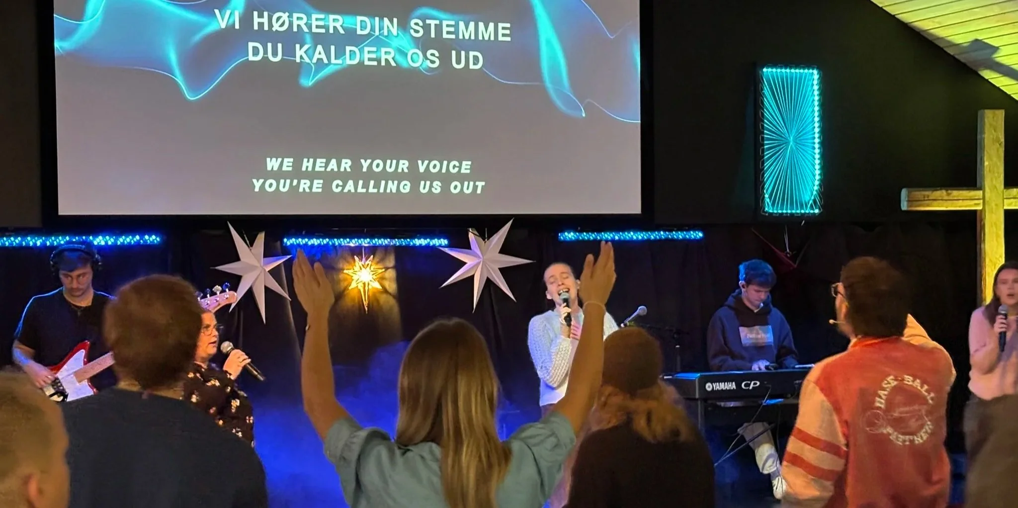 De fleste onsdage i ulige uger kl 19-20 har vi lovsang, bøn for kirken - byen - hinanden, og fællesskab.